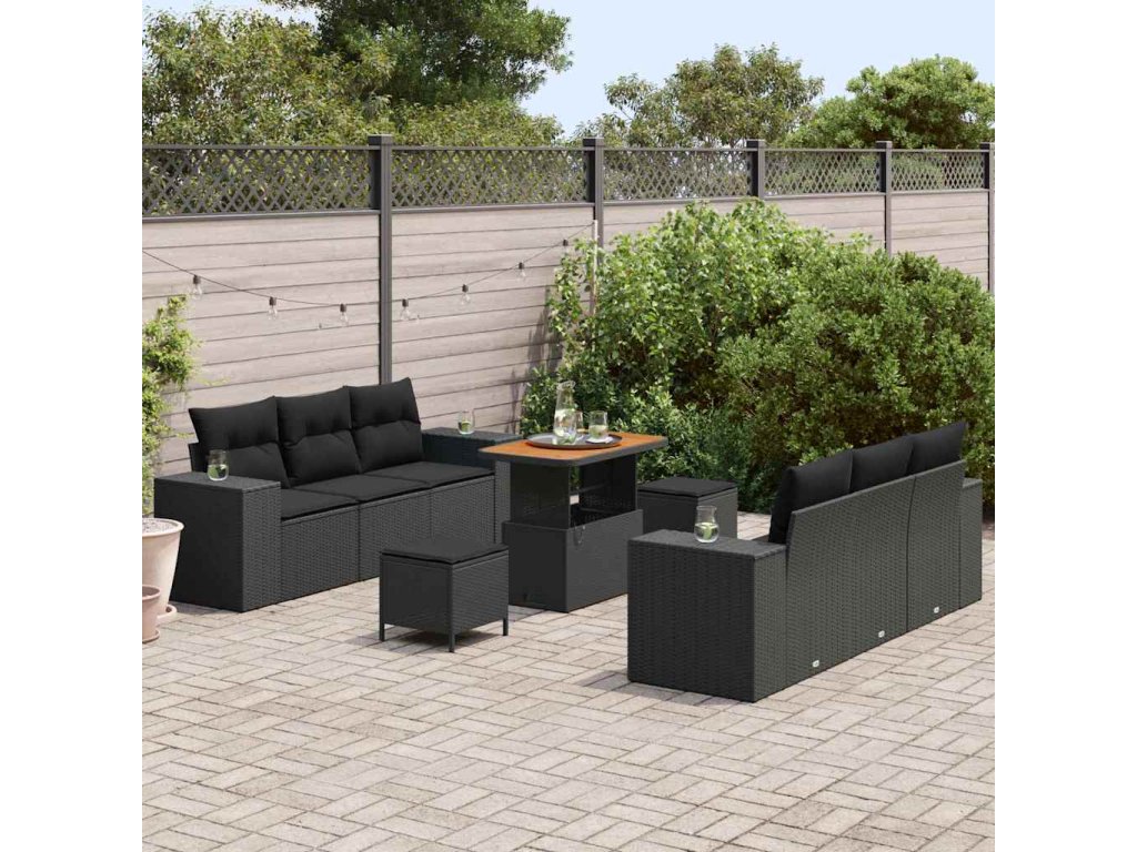 Sada zahradních pohovek s polštářem 9 pcs Černá Poly ratan 3361959
