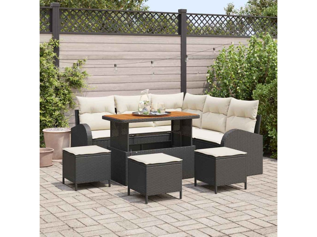 Sada zahradních pohovek s polštářem 9 pcs Černá Poly ratan 3362400
