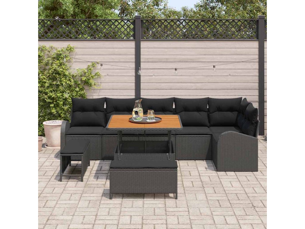 Sada zahradních pohovek s polštářem 9 pcs Černá Poly ratan 3362404