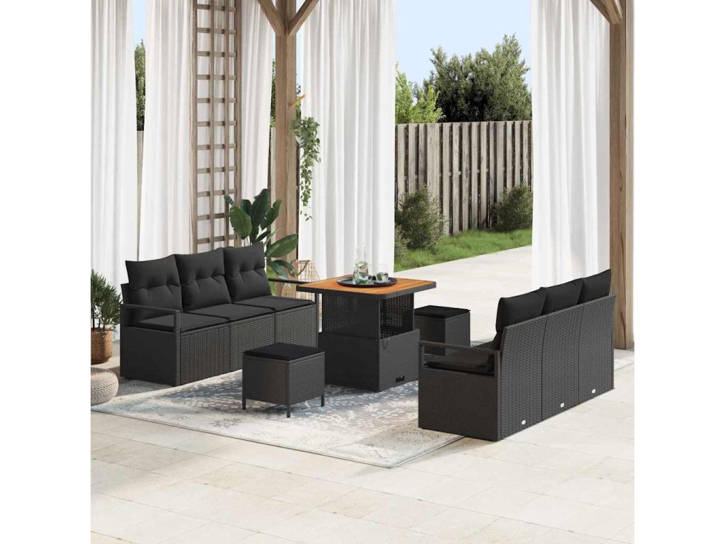 Sada zahradních pohovek s polštářem 9 pcs Černá Poly ratan 3362474