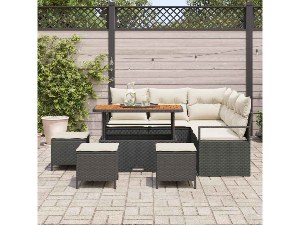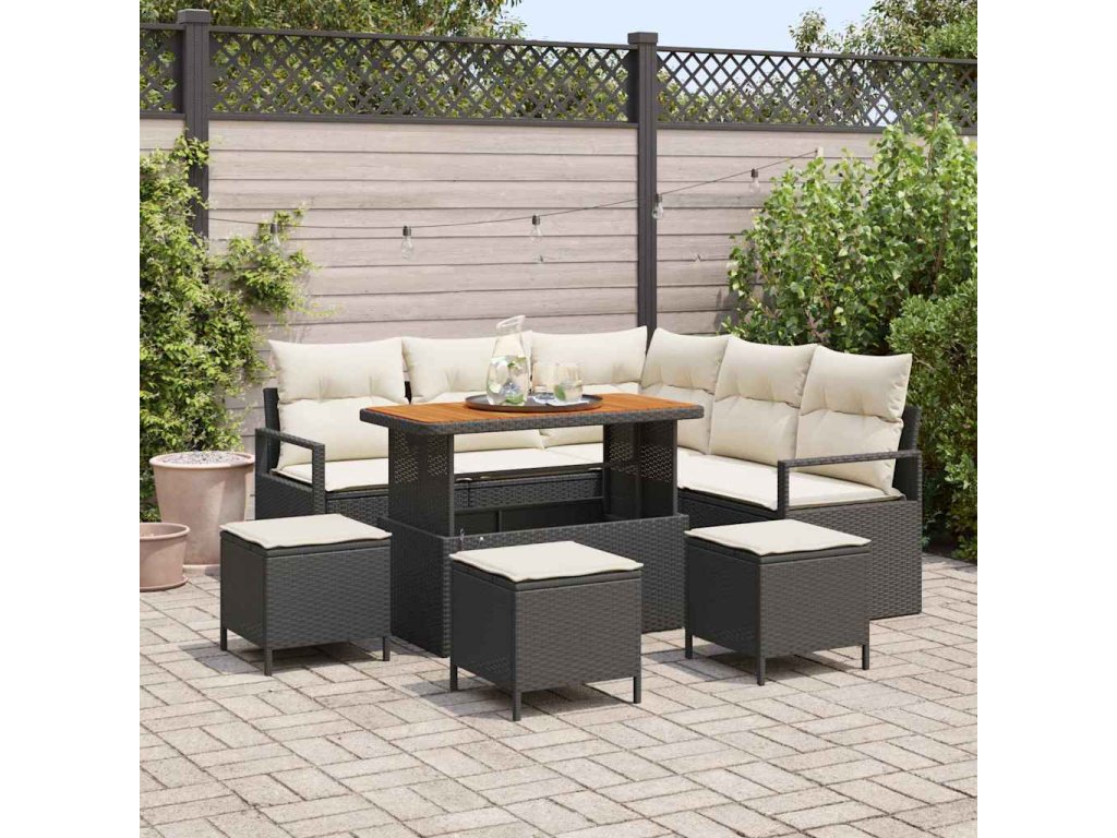Sada zahradních pohovek s polštářem 9 pcs Černá Poly ratan 3362530