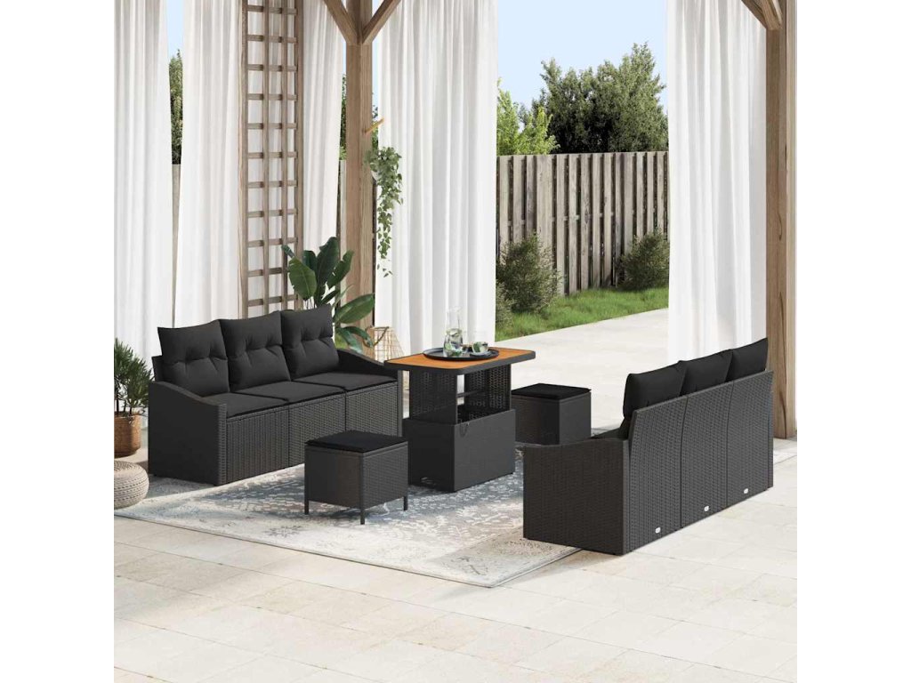 Sada zahradních pohovek s polštářem 9 pcs Černá Poly ratan 3362609