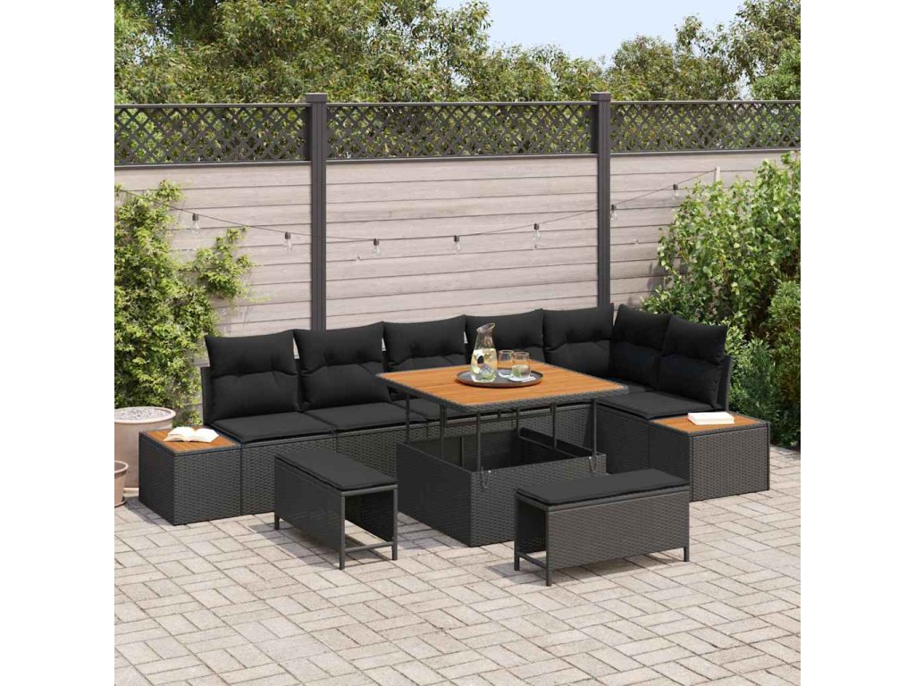 Sada zahradních pohovek s polštářem 9 pcs Černá Poly ratan 3362924