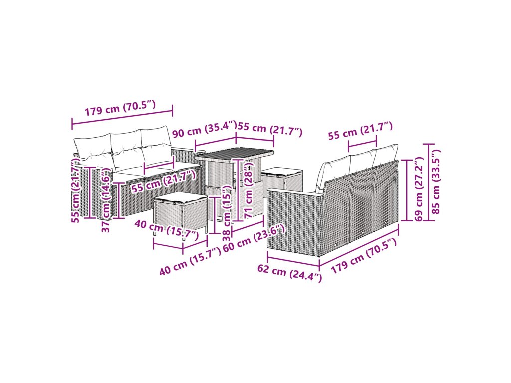 - Komplet kousky: Set obsahuje pečlivě navržené kusy jako pohovky s polstrovanými područkami, středové sedáky, čtvercové stolky a odpovídající stůl, takže si můžete mixovat a kombinovat podle toho, co potřebujete.