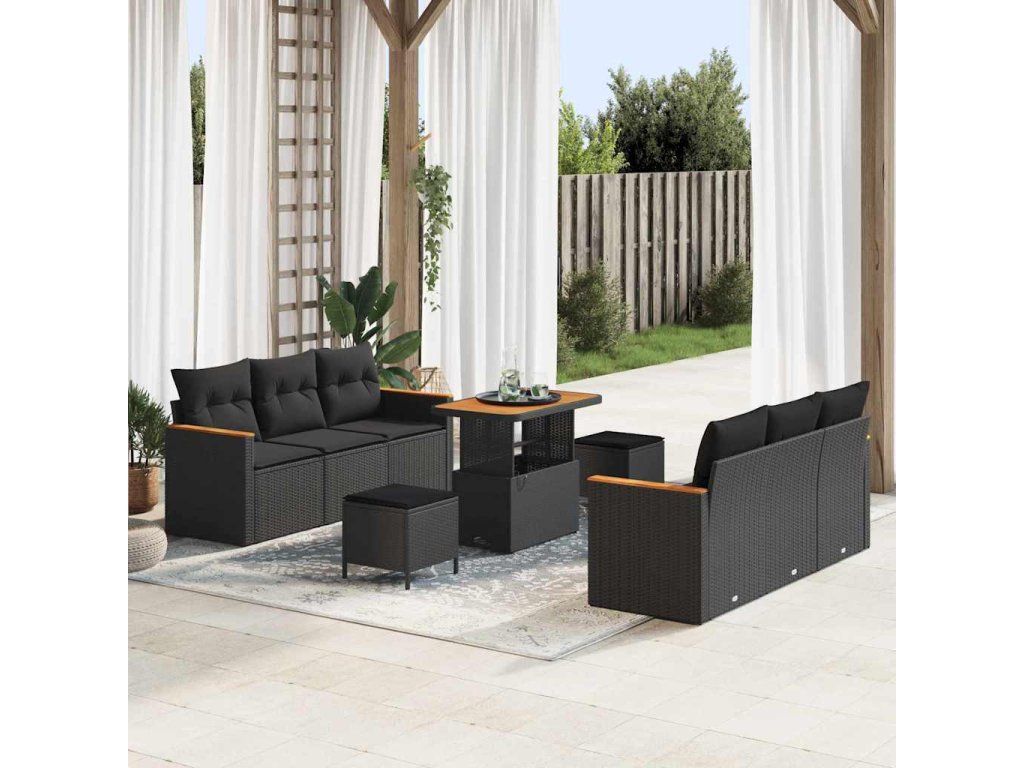 Sada zahradních pohovek s polštářem 9 pcs Černá Poly ratan 3362999