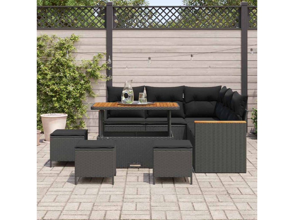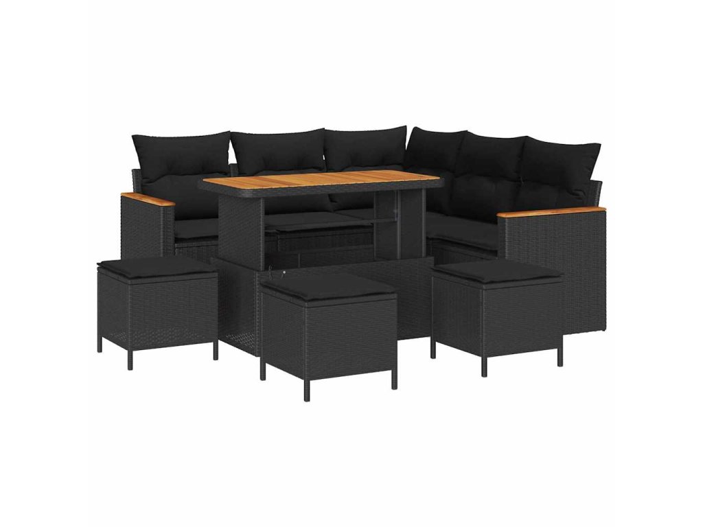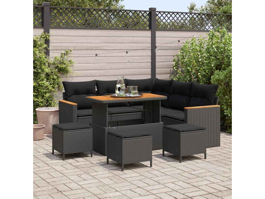 Sada zahradních pohovek s polštářem 9 pcs Černá Poly ratan 3363049