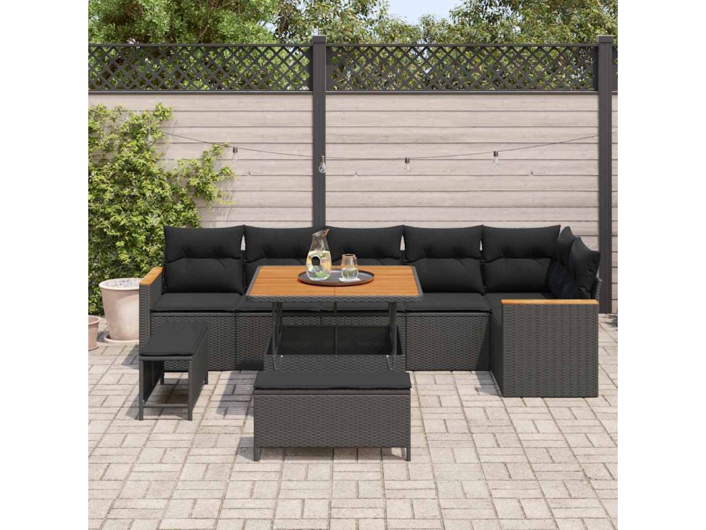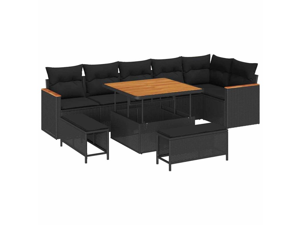 Sada zahradních pohovek s polštářem 9 pcs Černá Poly ratan 3363054