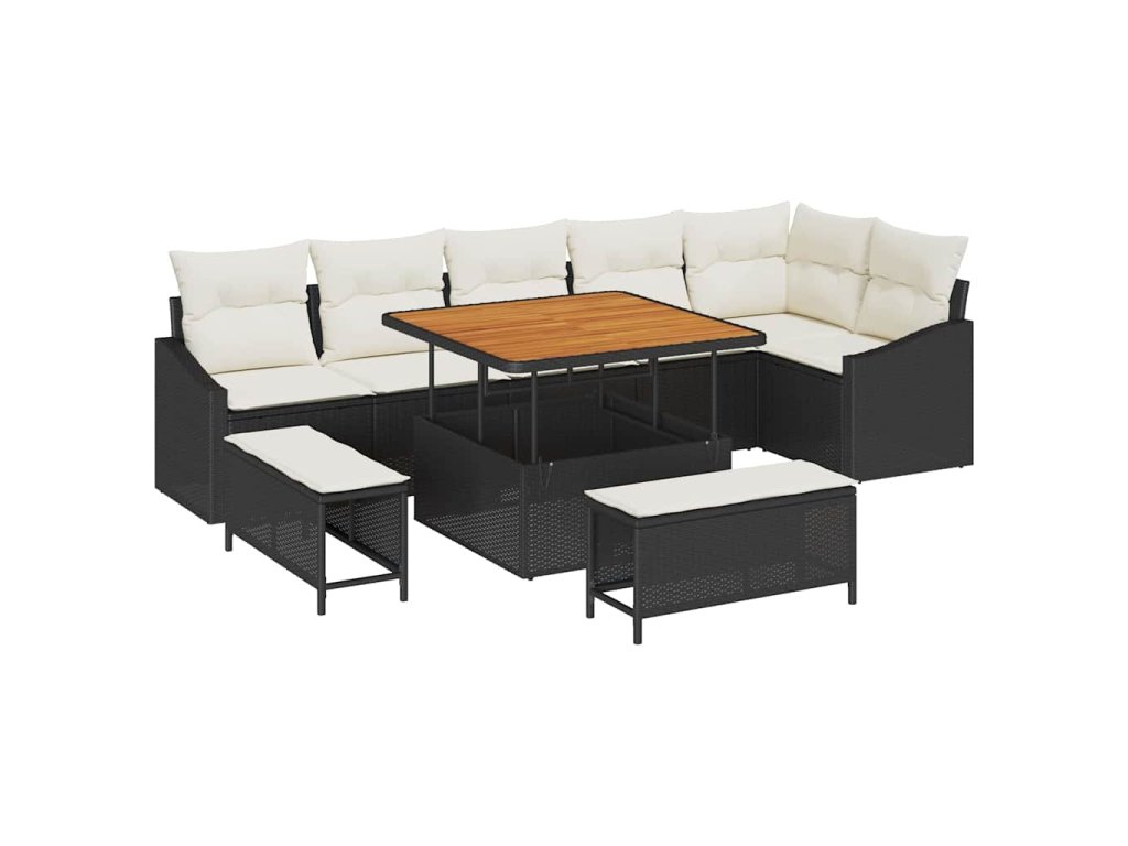 Sada zahradních pohovek s polštářem 9 pcs Černá Poly ratan 3364615