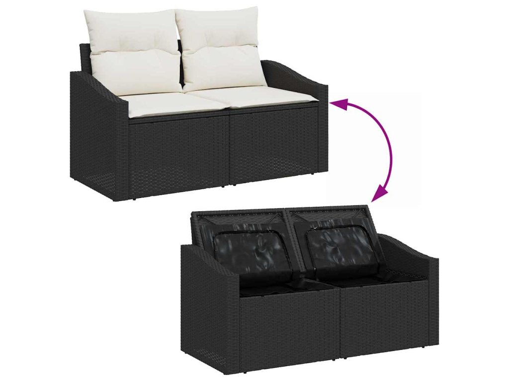 Sada zahradních pohovek s polštářem 9 pcs Černá Poly ratan 3364620