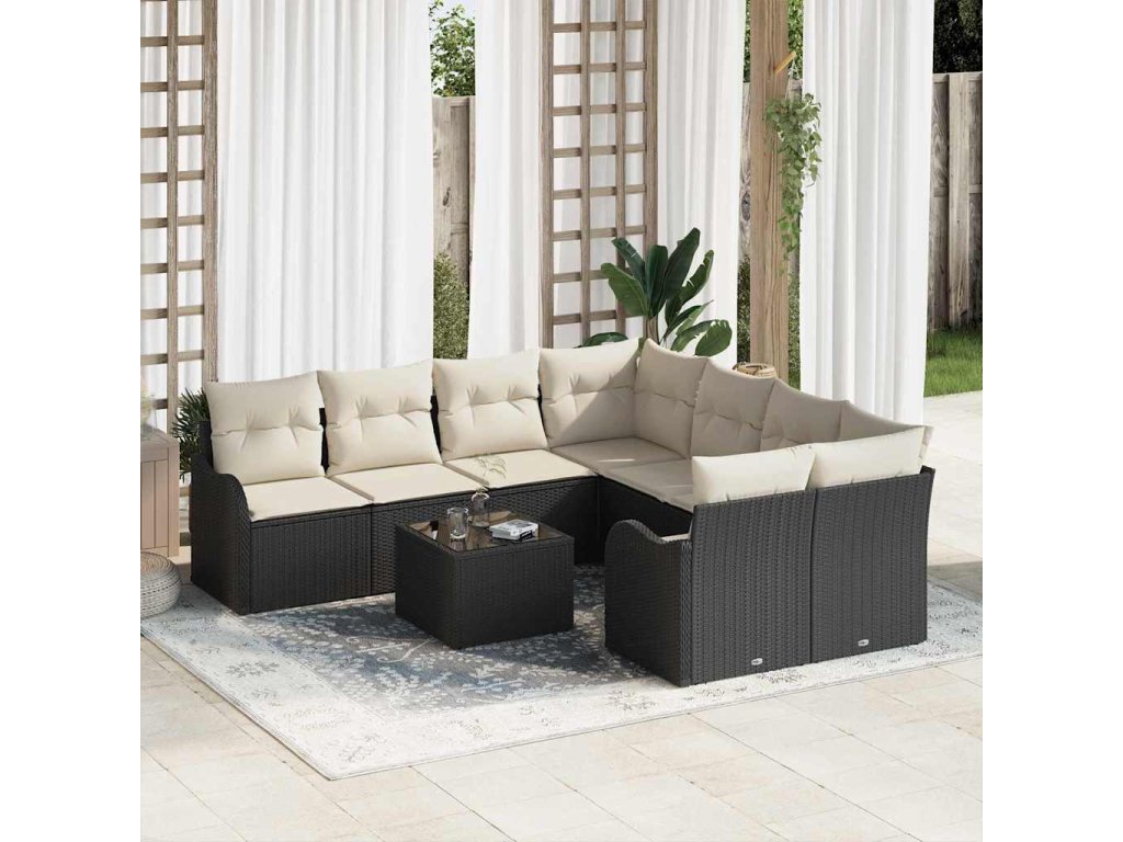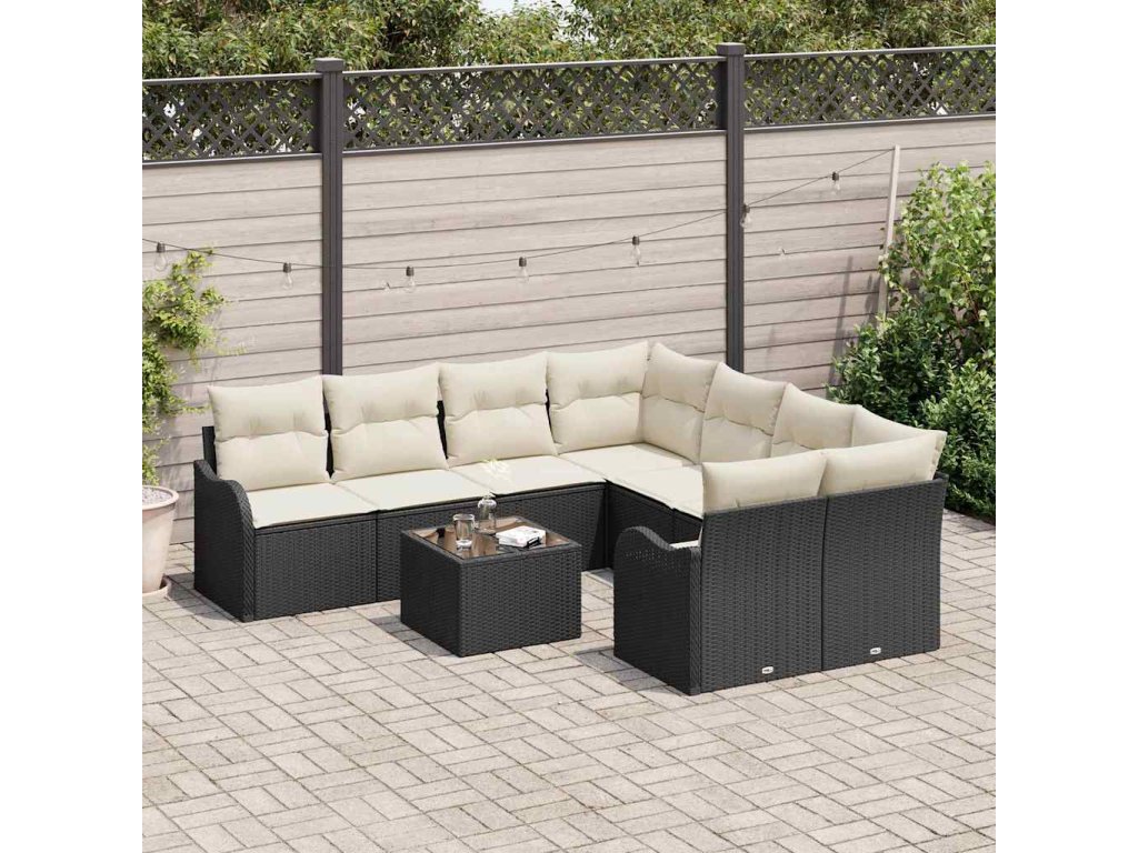 Sada zahradních pohovek s polštářem 9 pcs Černá polyratan 3345637