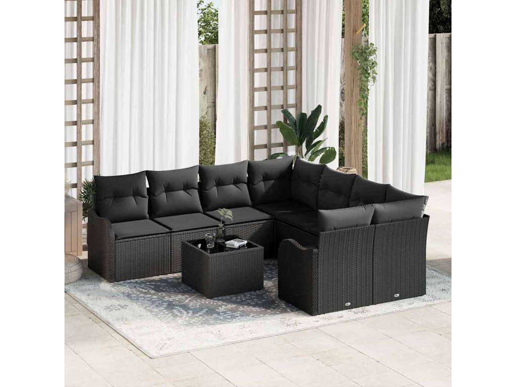 Sada zahradních pohovek s polštářem 9 pcs Černá polyratan 3345643