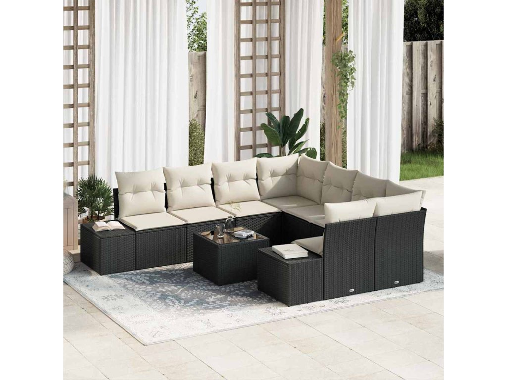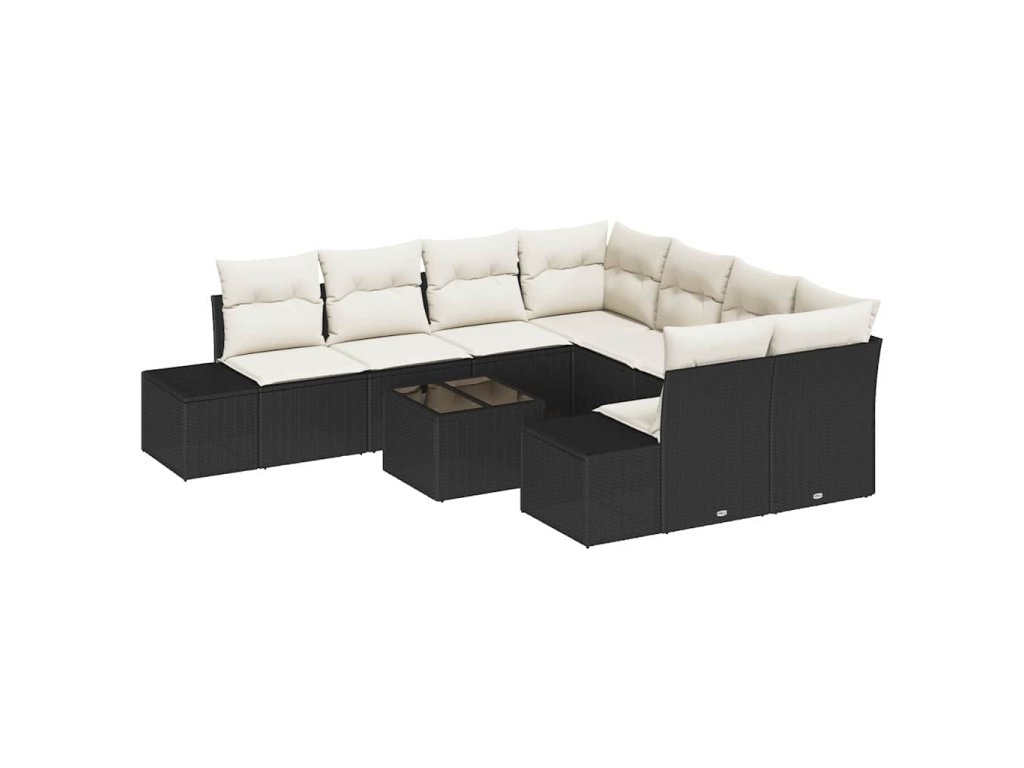 Sada zahradních pohovek s polštářem 9 pcs Černá polyratan 3346997