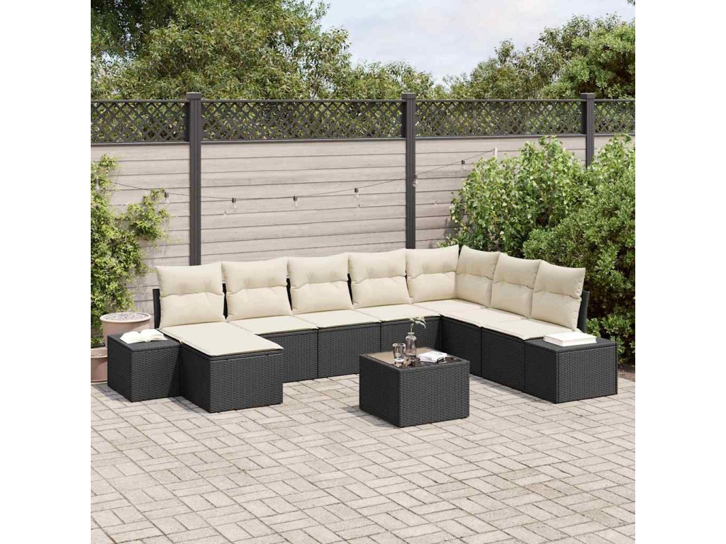 Sada zahradních pohovek s polštářem 9 pcs Černá polyratan 3347187