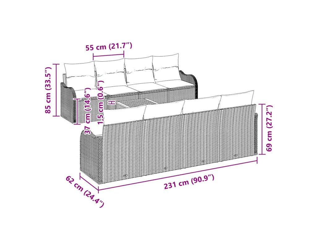 - 4 x Boční pohovka: 50,5 x 62 x 85 cm (DxŠxV)