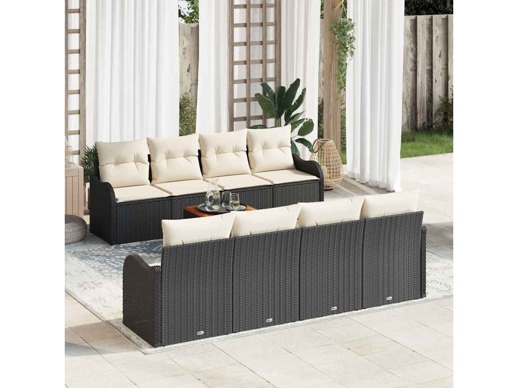 Sada zahradních pohovek s polštářem 9 pcs Černá polyratan 3347425