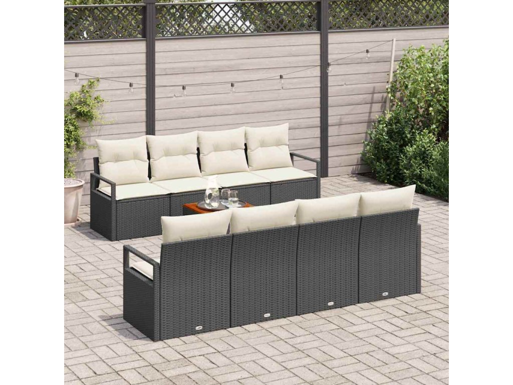 Sada zahradních pohovek s polštářem 9 pcs Černá polyratan 3347677