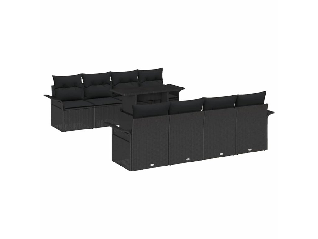 Sada zahradních pohovek s polštářem 9 pcs Černá polyratan 3348249
