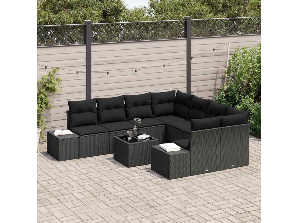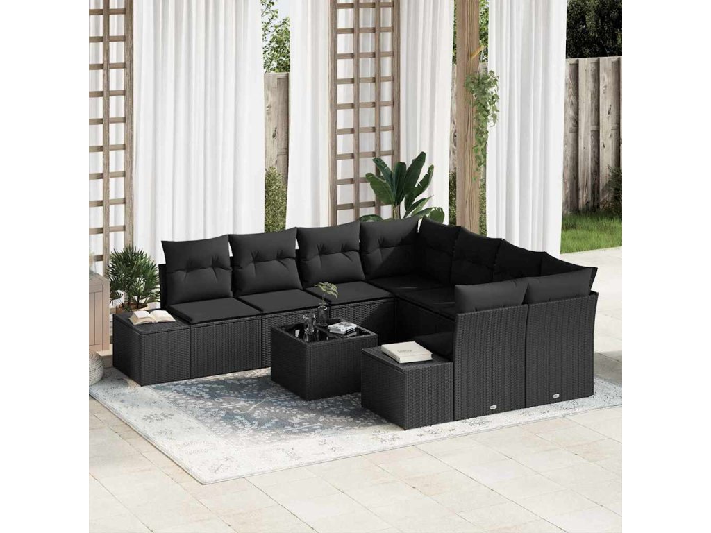 Sada zahradních pohovek s polštářem 9 pcs Černá polyratan 3355672