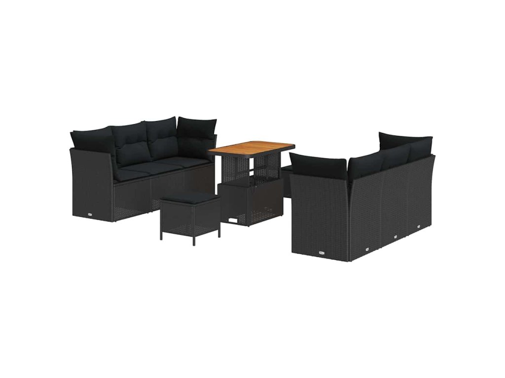Sada zahradních pohovek s polštářem 9 pcs Černá polyratan 3361439