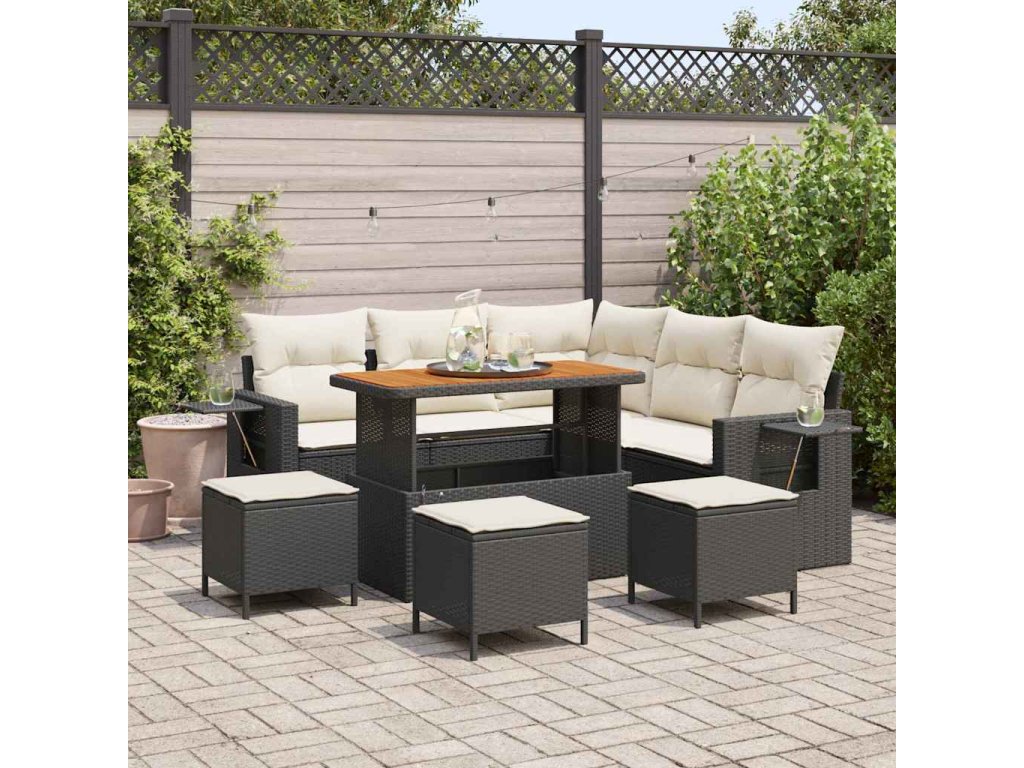 Sada zahradních pohovek s polštářem 9 pcs Černá polyratan 3361750