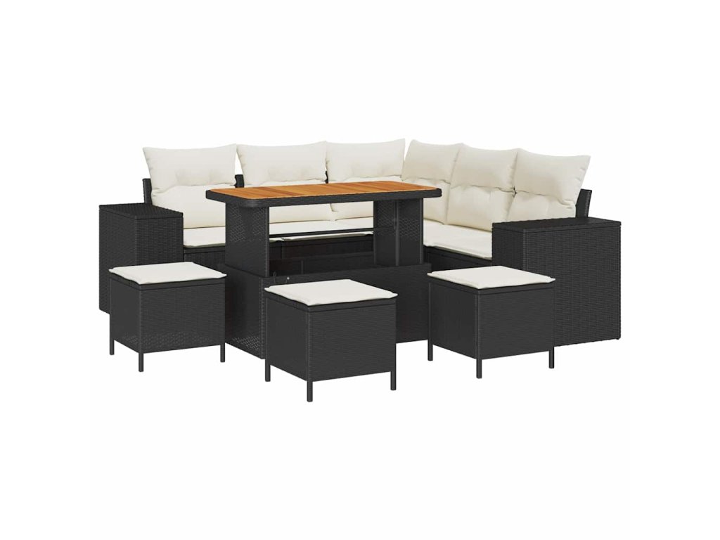 Sada zahradních pohovek s polštářem 9 pcs Černá polyratan 3362010