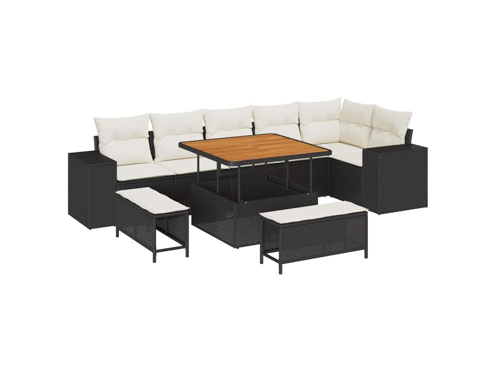 Sada zahradních pohovek s polštářem 9 pcs Černá polyratan 3362015