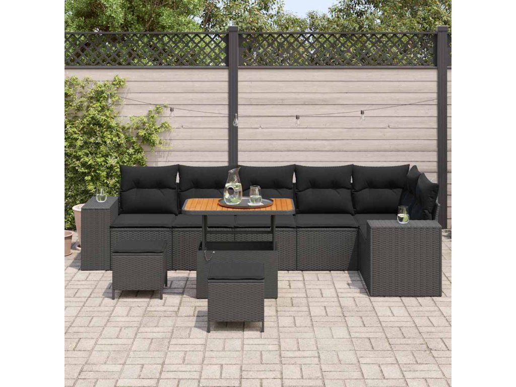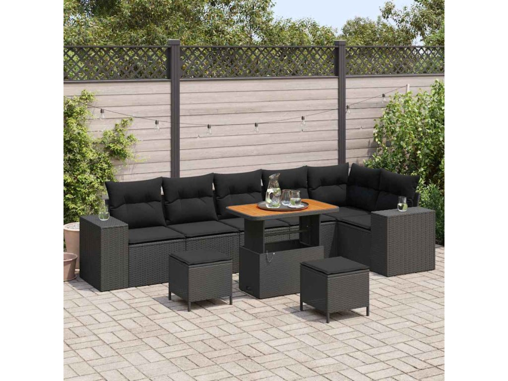 Sada zahradních pohovek s polštářem 9 pcs Černá polyratan 3362024