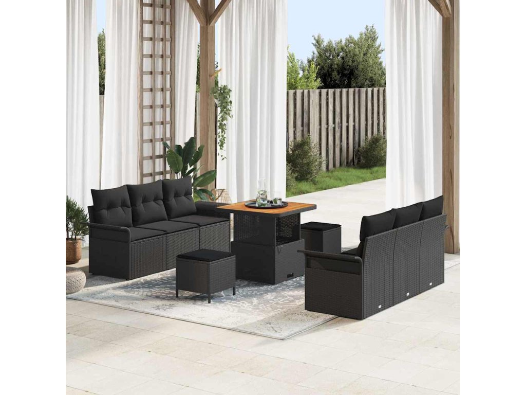 Sada zahradních pohovek s polštářem 9 pcs Černá polyratan 3362084
