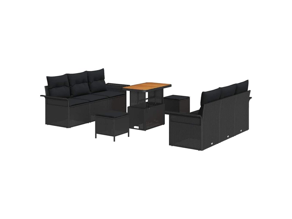 Sada zahradních pohovek s polštářem 9 pcs Černá polyratan 3362089