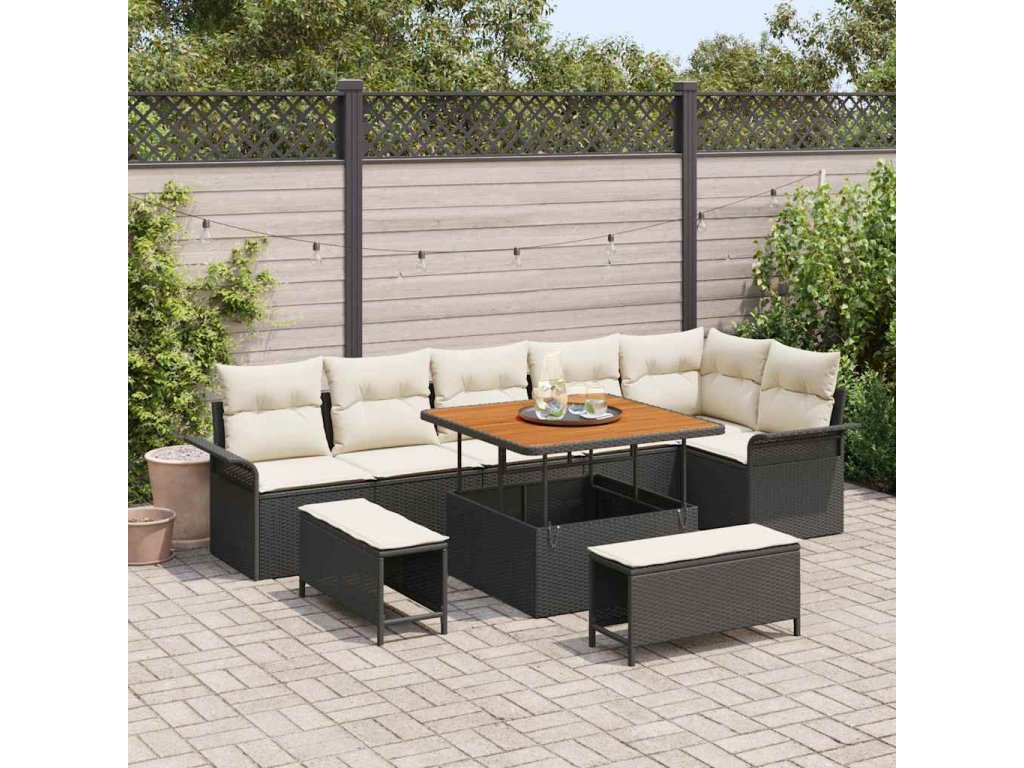Sada zahradních pohovek s polštářem 9 pcs Černá polyratan 3362145