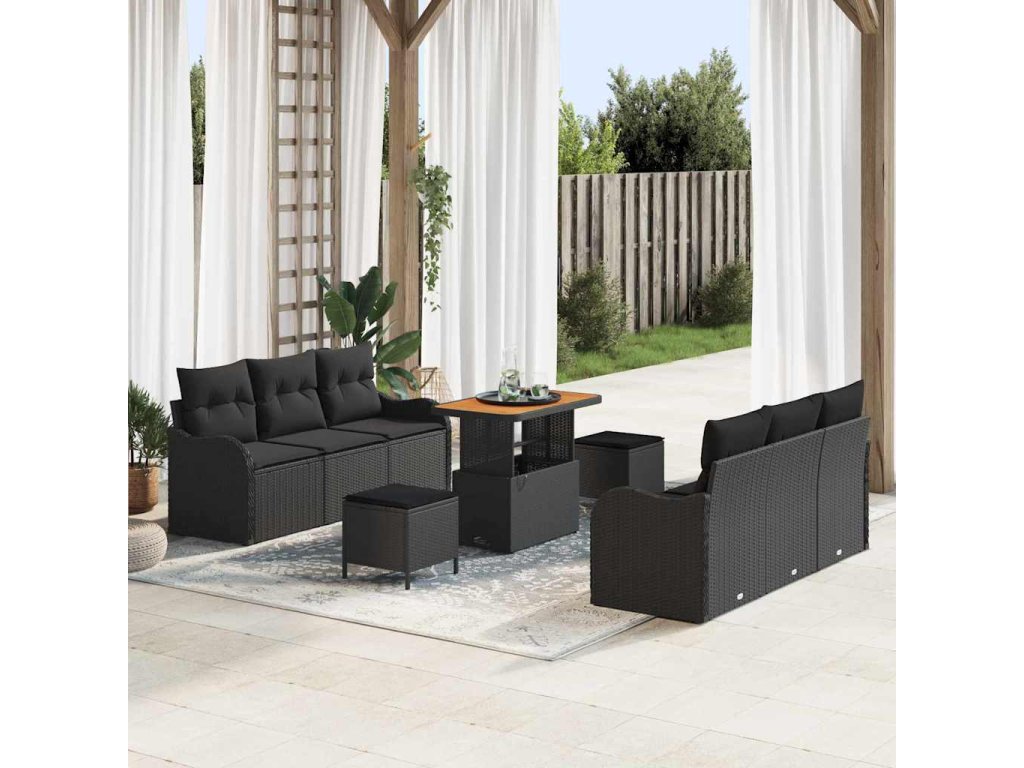 Sada zahradních pohovek s polštářem 9 pcs Černá polyratan 3362219