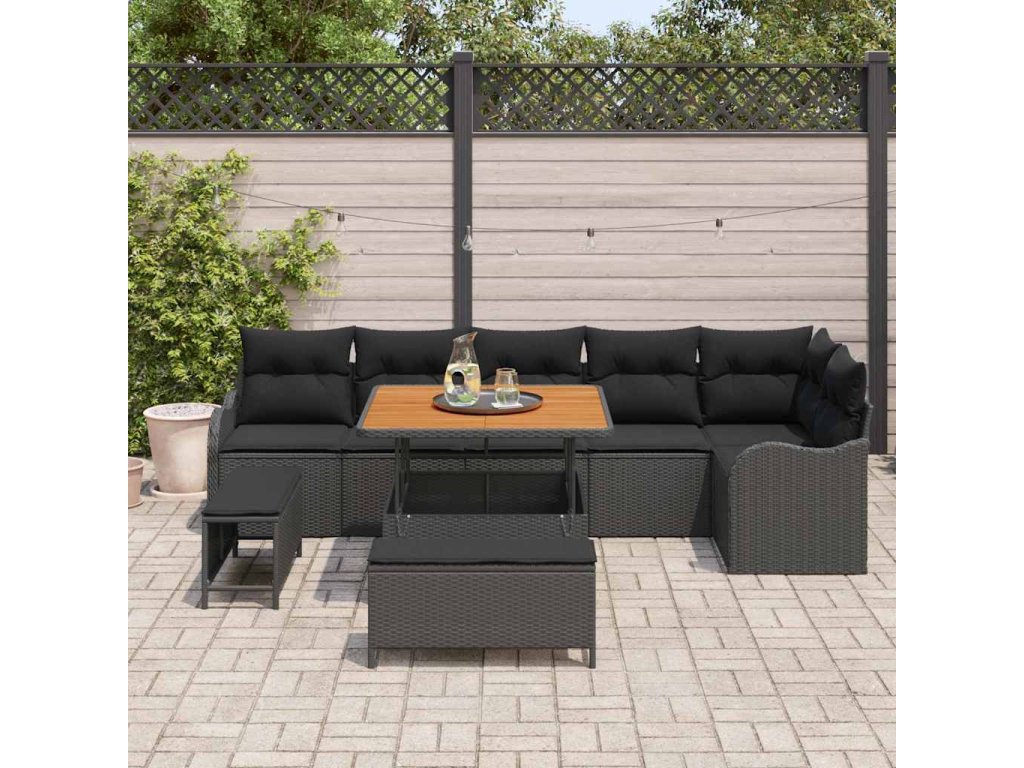 Sada zahradních pohovek s polštářem 9 pcs Černá polyratan 3362274