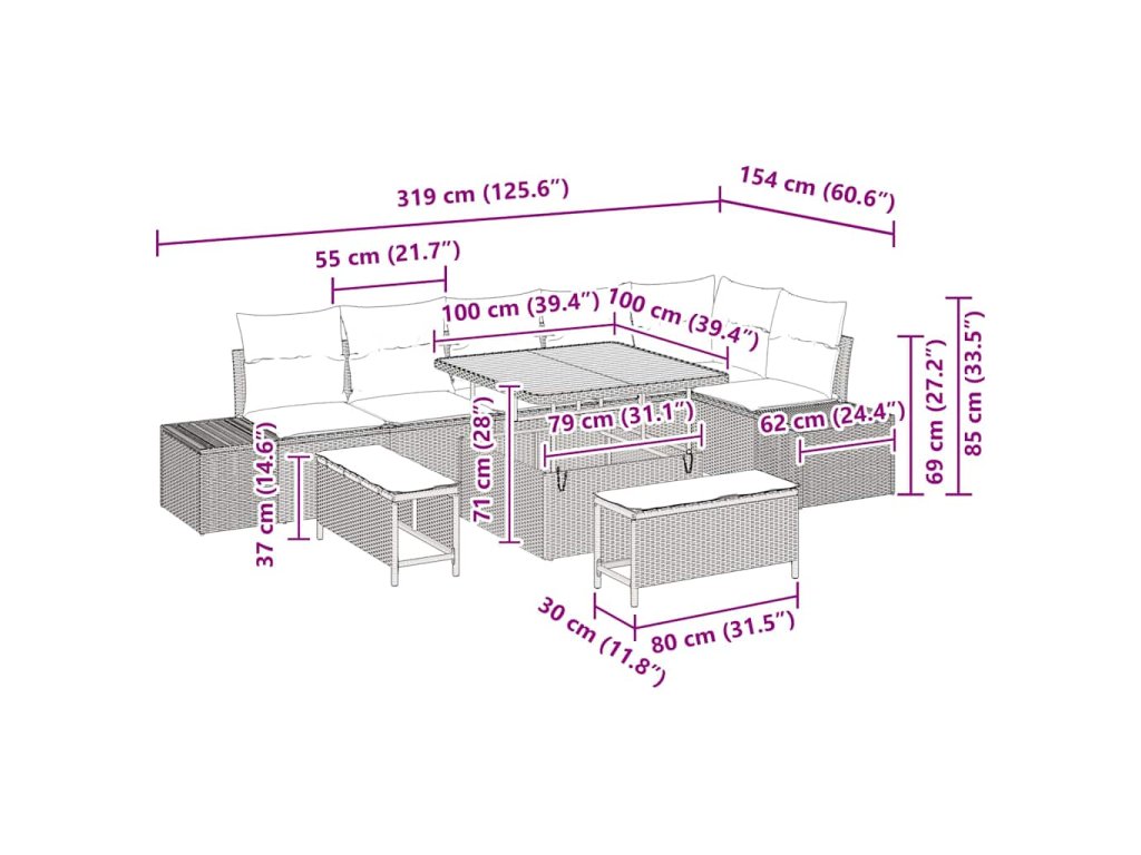 - Péče a údržba: Aby vaše souprava zůstala v perfektním stavu, používejte ochranný kryt, když ji nepoužíváte. Pravidelně ji udržujte čištěním jemnými prostředky, což zachová její vzhled na více sezon.