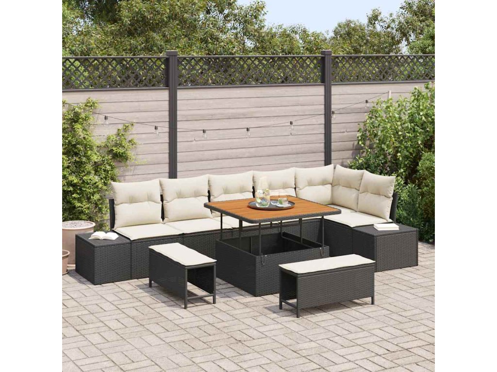 Sada zahradních pohovek s polštářem 9 pcs Černá polyratan 3362795