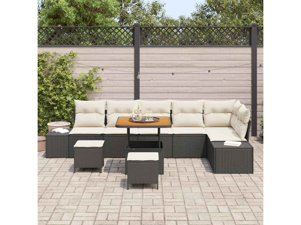 Sada zahradních pohovek s polštářem 9 pcs Černá polyratan 3362800