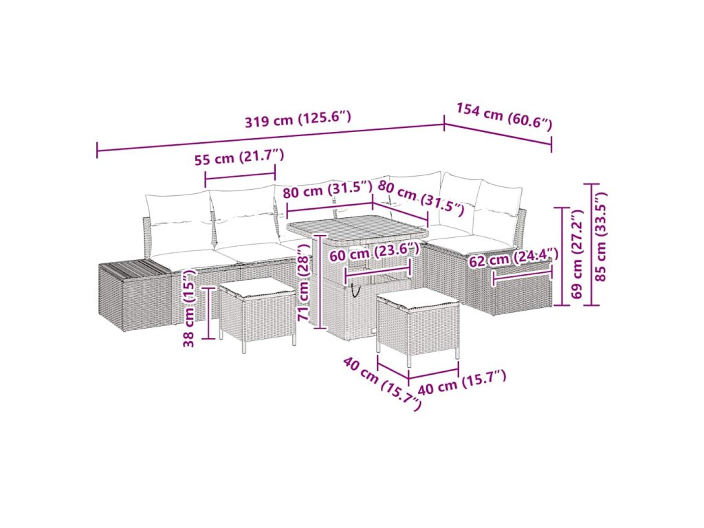 - Péče a údržba: Aby vaše souprava zůstala v perfektním stavu, používejte ochranný kryt, když ji nepoužíváte. Pravidelně ji udržujte čištěním jemnými prostředky, což zachová její vzhled na více sezon.