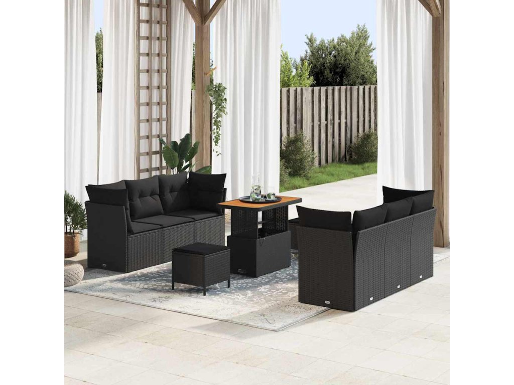 Sada zahradních pohovek s polštářem 9 pcs Černá polyratan 3363389