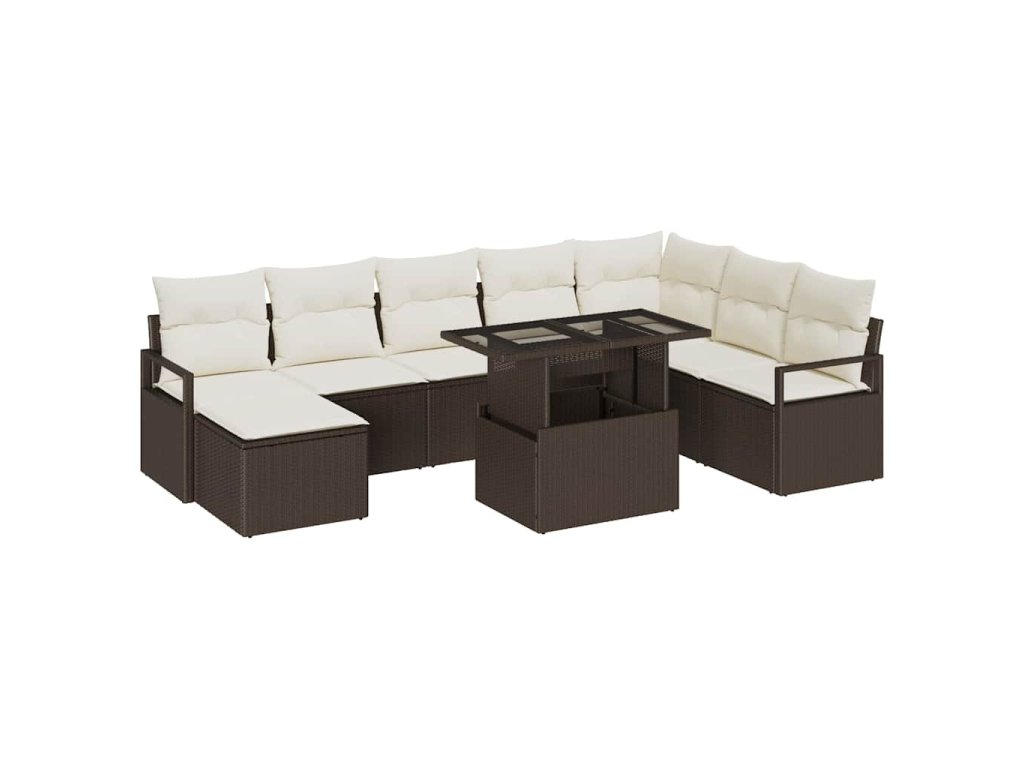 Sada zahradních pohovek s polštářem 9 pcs Hnědá a krémová 3348874