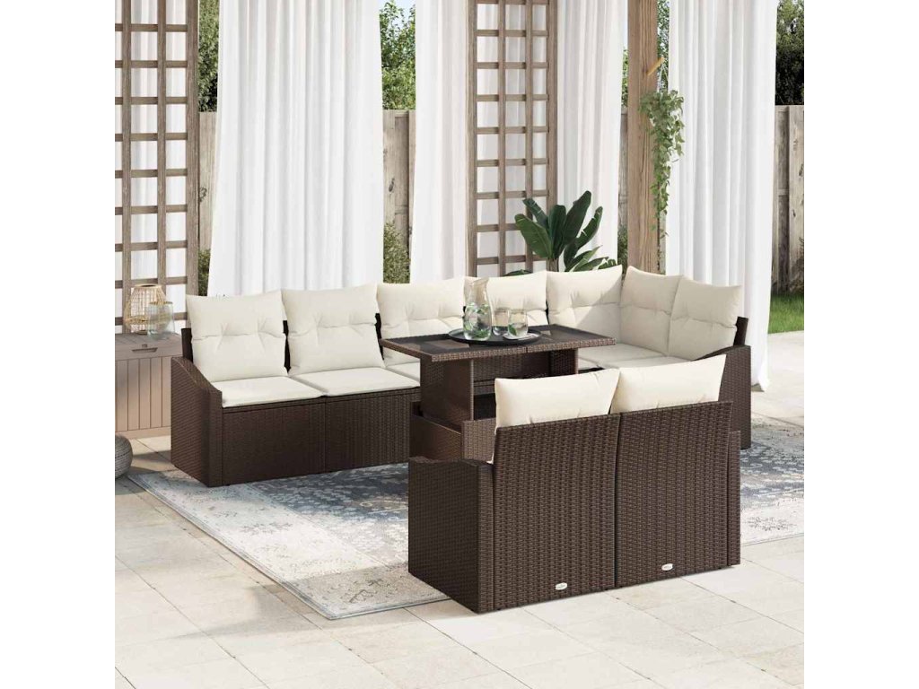 Sada zahradních pohovek s polštářem 9 pcs Hnědá a krémová 3357761