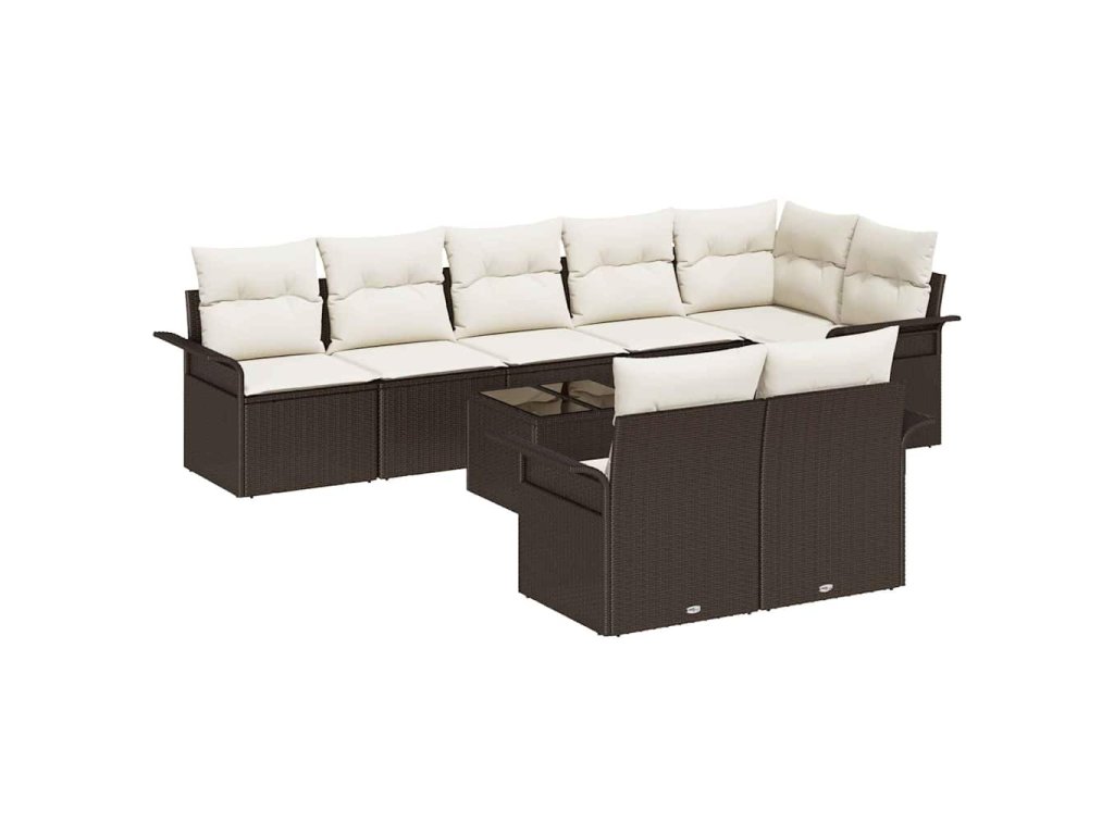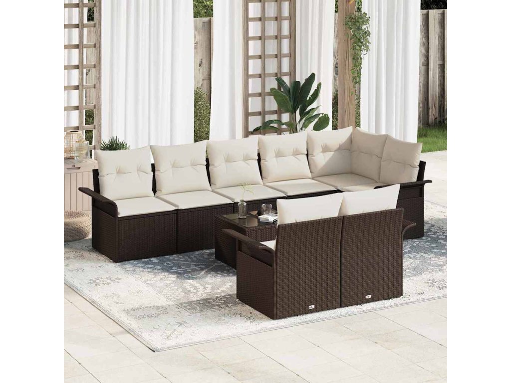 Sada zahradních pohovek s polštářem 9 pcs Hnědá Poly ratan 3345418