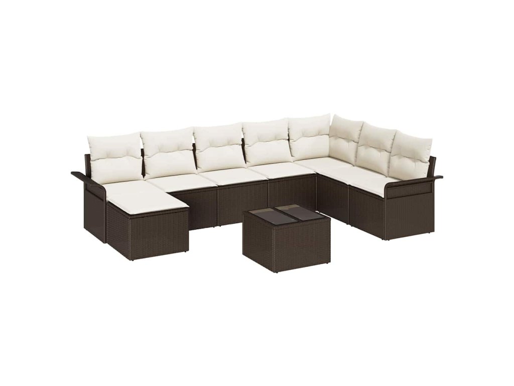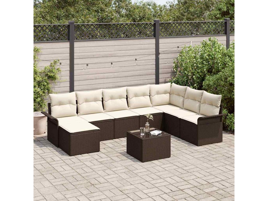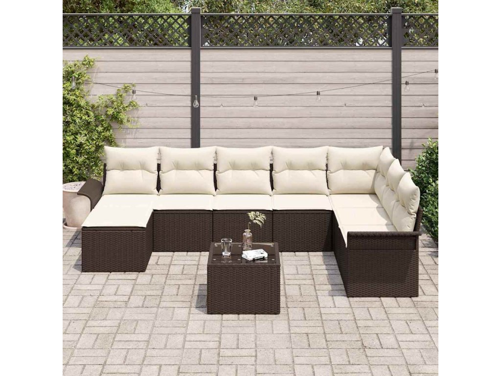 Sada zahradních pohovek s polštářem 9 pcs Hnědá Poly ratan 3345488