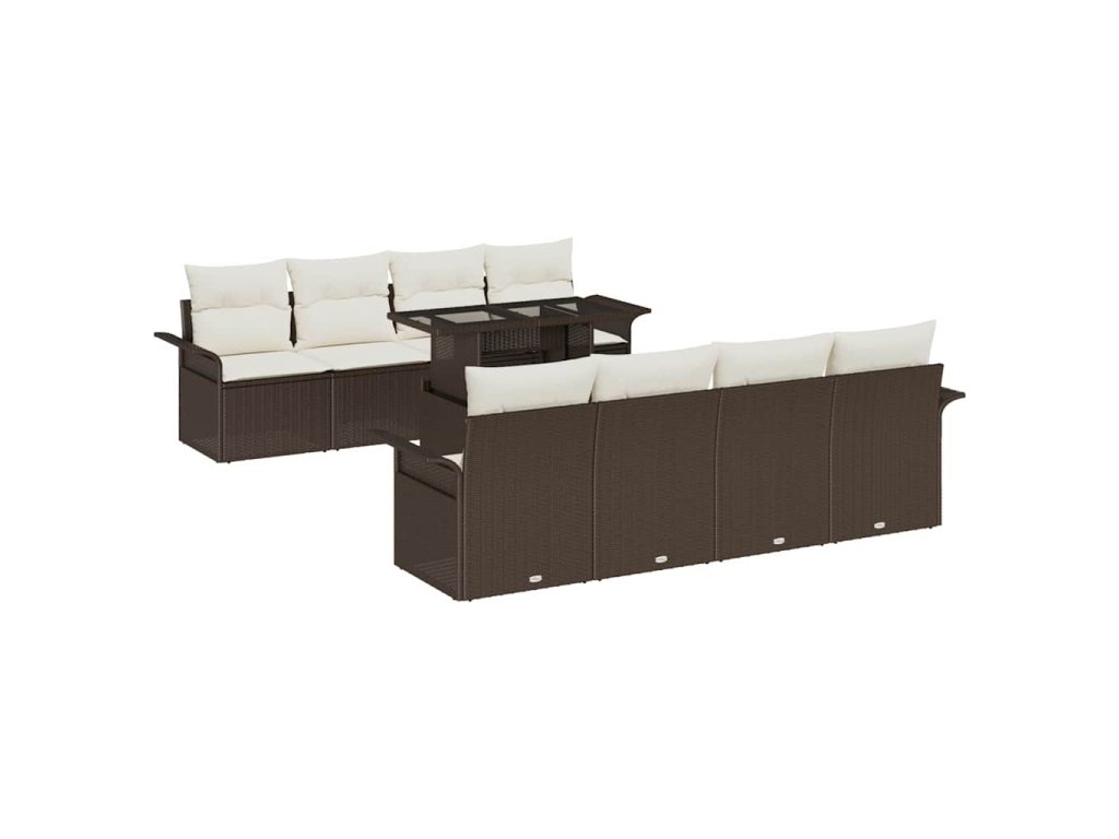 Sada zahradních pohovek s polštářem 9 pcs Hnědá Poly ratan 3356981