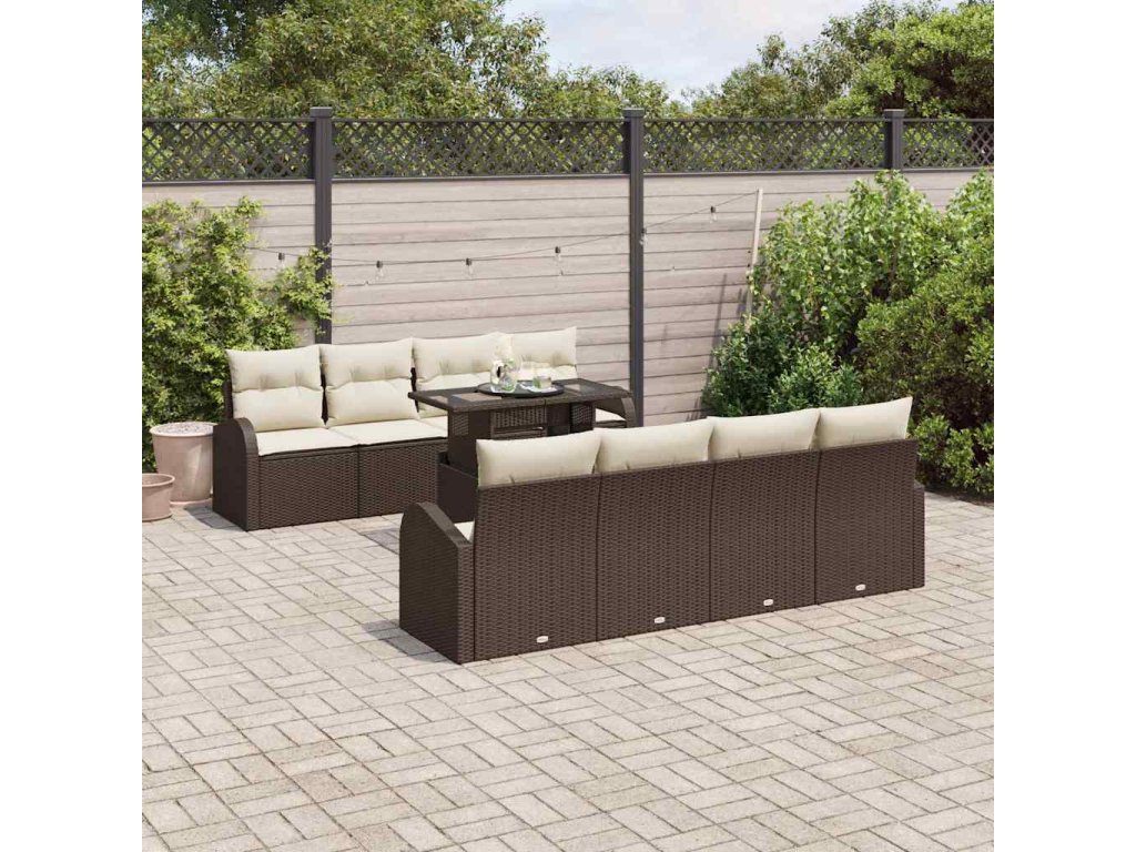 Sada zahradních pohovek s polštářem 9 pcs Hnědá Poly Ratan 3357341
