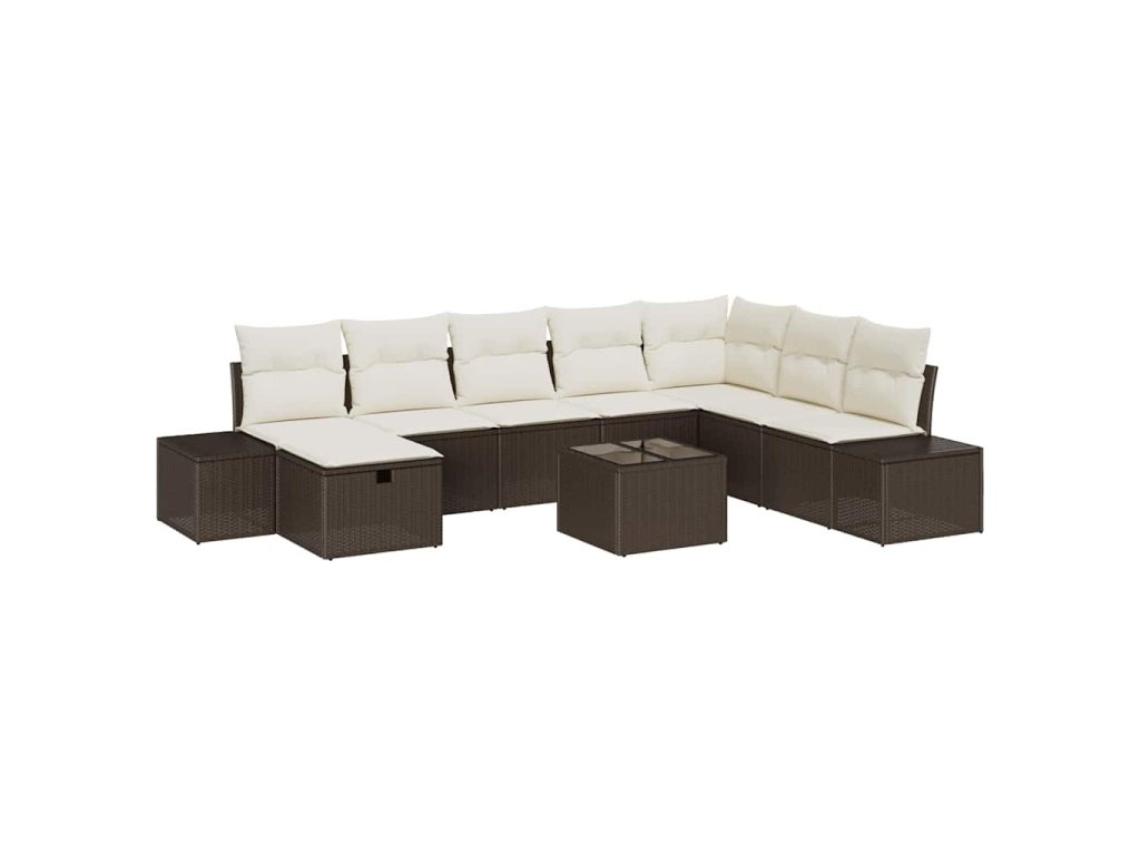 Sada zahradních pohovek s polštářem 9 pcs Hnědá Poly ratan 3360769