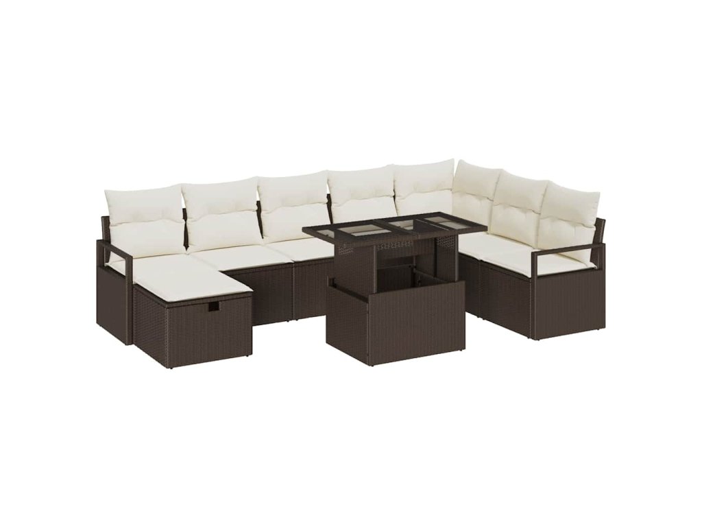 Sada zahradních pohovek s polštářem 9 pcs Hnědá Poly ratan 3361147