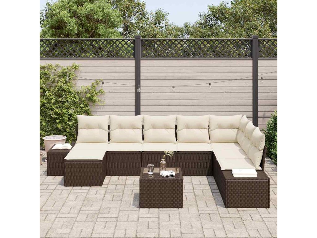 Sada zahradních pohovek s polštářem 9 pcs Hnědá polyratan 3347188