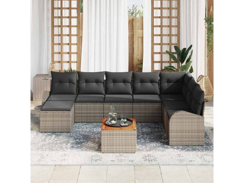 Sada zahradních pohovek s polštářem 9 pcs Šedá Poly ratan 3347615