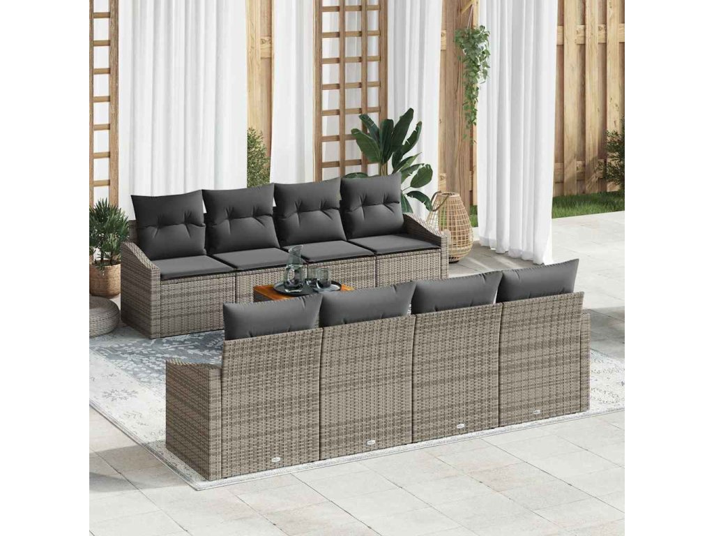 Sada zahradních pohovek s polštářem 9 pcs Šedá Poly ratan 3347804