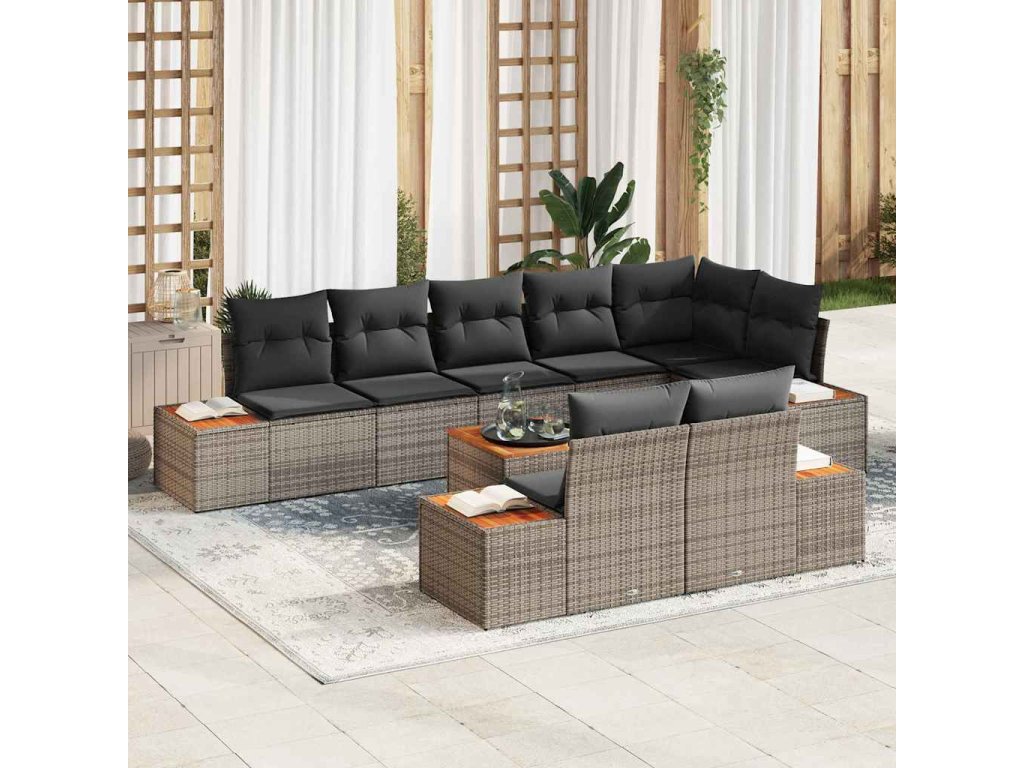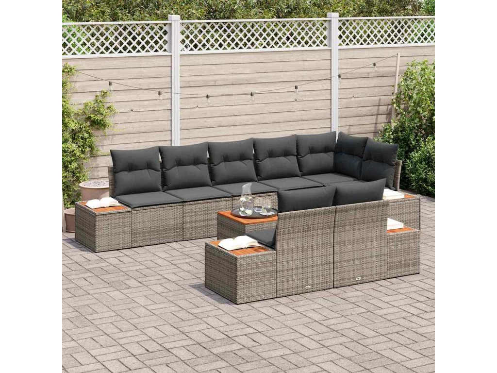Sada zahradních pohovek s polštářem 9 pcs Šedá Poly ratan 3348115