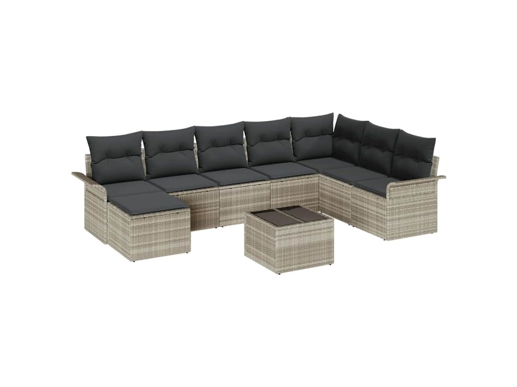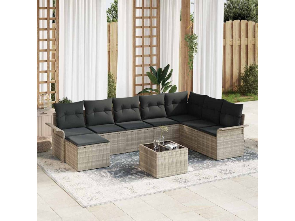Sada zahradních pohovek s polštářem 9 pcs Šedá Poly ratan 3354161